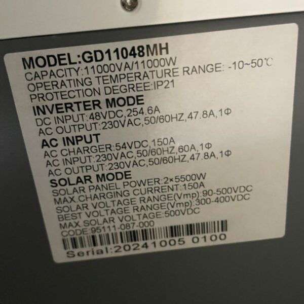 High Capacity Output: Rated at 11,000VA / 11,000W, the GD11048MH supports large energy loads, making it ideal for residential, commercial, and small industrial applications.